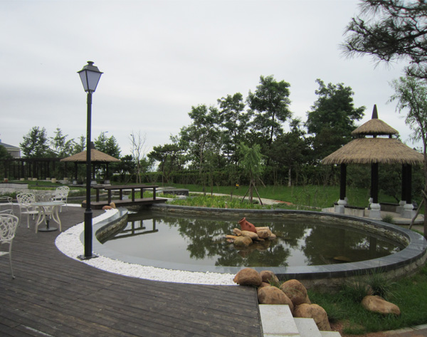 該項目位于遼寧省葫蘆島市東戴河綏中濱海經(jīng)濟區(qū),是由北京盛邦基業(yè)旅游置業(yè)有限公司開發(fā)的集聯(lián)排別墅與高層的綜合住宅項目。施工總面積為18.5公頃,工期為2011年10月11日至2013年6月20日。該項目利用了植物多層景觀搭配,結(jié)合了地形的起伏變化,營造出人與自然和諧的優(yōu)美環(huán)境。除了多彩的地面鋪裝外,水系的造園工藝完美的滲透到整個工程,形成了極具特色的濱海景觀。