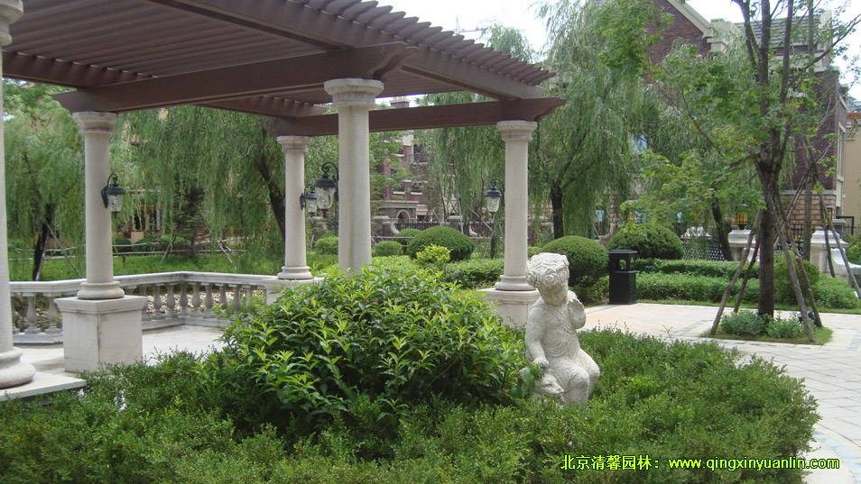 該項目位于遼寧省丹東市元寶區(qū)金山鎮(zhèn),是由丹東博恩房地產開發(fā)有限公司開發(fā)的高端聯排別墅。我公司承建該項目御山水一期園區(qū)綠化工程,施工工期為2013年5月30日至2013年8月30日,綠化面積約1.8萬平方米,工程內容包括綠化、土建、水電。該項目利用了植物的多層景觀搭配營造了曲徑通幽,密不插針、疏可走馬的自然式植物群落環(huán)境,同時每個景觀小品、噴泉、花壇都塑造出精致的歐洲園林風,與巴洛克式建筑相呼應,別具一格。土建方面除了多樣的地面鋪張外,還涉及到水系、廊架等專業(yè)項目,整體園林景觀體現了人與自然的和諧統(tǒng)一。