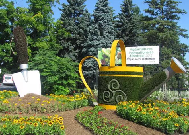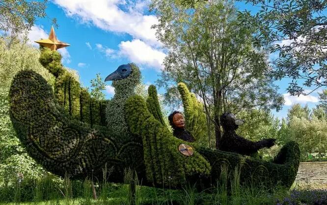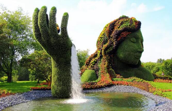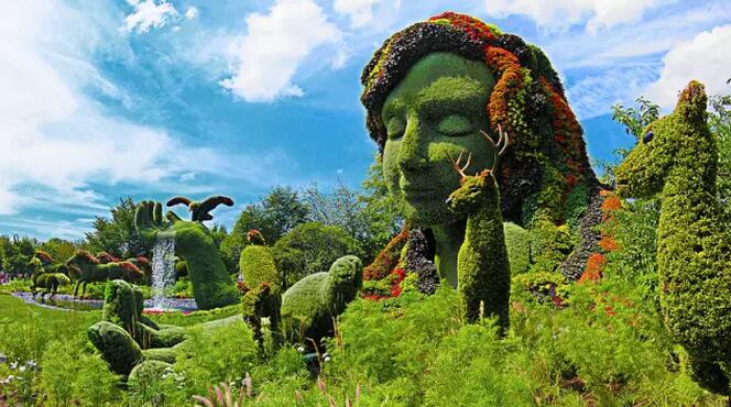 如今,在現(xiàn)實世界中的某個地方——加拿大蒙特利市重現(xiàn)了這繽紛的一幕。這次立體花壇展覽是場十分浩大的工程,作品耗費200名藝術(shù)家的心血,用300萬株植物和花朵制作而成,滿目鮮綠。