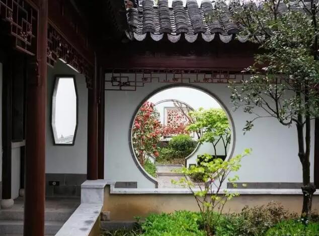 門是開合的樞紐,而有這么一扇門卻與眾不同,它僅有門框而沒有門扇,這便是洞門。洞門采取不同角度交錯布置園墻、洞門,在強烈的陽光下會出現(xiàn)多樣的光影變化。日出、日中、日落、春來、夏至、秋始、冬結(jié),洞門就如一雙發(fā)現(xiàn)美的眼睛,以小見大,一念之間可以一花一世界,一樹一菩提!